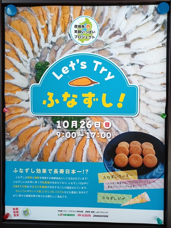 また、試食に合わせて、ふなずしクッキーとキリン様の午後の紅茶をセット販売させていただき、ふなずし販売店MAPやふなずし乳酸菌の健康効果についてのパンフレット配布も行いました。