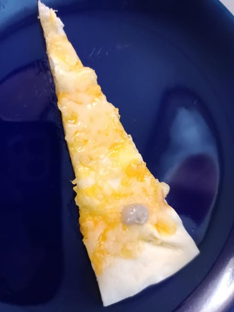 第2段階 焼いたチーズピザに、ふなずしのペーストを少しのせたふなずしピザ