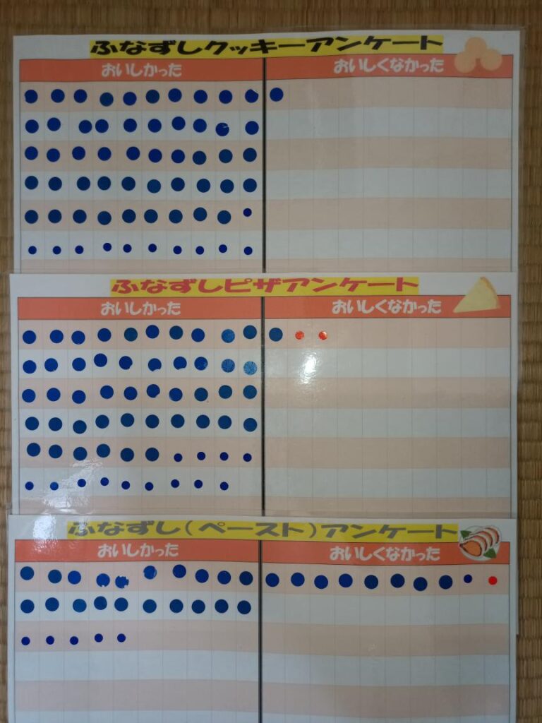 雨の中、屋外での出店ではありましたが、多くの方が立ち寄りくださり、大変嬉しく思いました。ふなずしを「一度食べてみたかった」と言ってくださる方、「初めて食べる」という方が多く、この試食会に興味を持ってくださったので、やりがいを感じられました。特に大学生は、第3段階のふなずしペーストにも挑戦してくださる方が多かったのですが、予想に反して、「おいしい」「いける」「お酒に合いそう」という方が多く、驚きました。初めて食べておいしいと感じる方は少ないだろうと予想していたので、ふなずしスライスではなく、ペーストだったことで、食べていただく量の調整がしやすく、筋っぽさも少なく食べやすかったのだろうと思いました。また、近畿地方出身者には、ふなずし認知度が高かったのですが、それ以外の出身者の認知度は低く、知ってもらうきっかけになったのも良かったです。ふなずしに出会っていただけた皆様には、今度は、好みの味のふなずしを見つけてもらうという次のステージに進んでもらえたら嬉しいです。