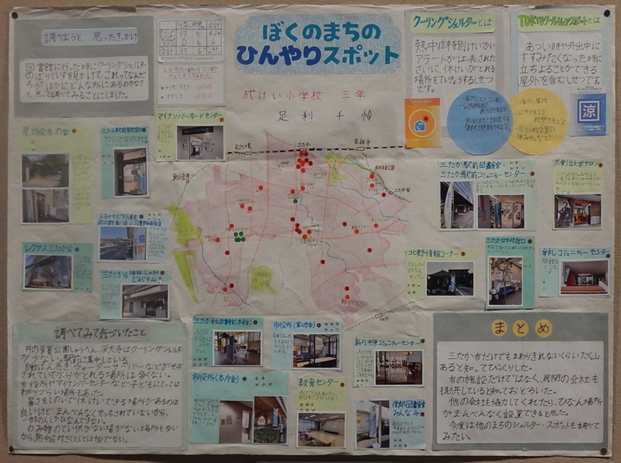 作品タイトル:ぼくのまちのひんやりスポット 氏名:足利 千怜 学校名:成蹊小学校 学年:3 |