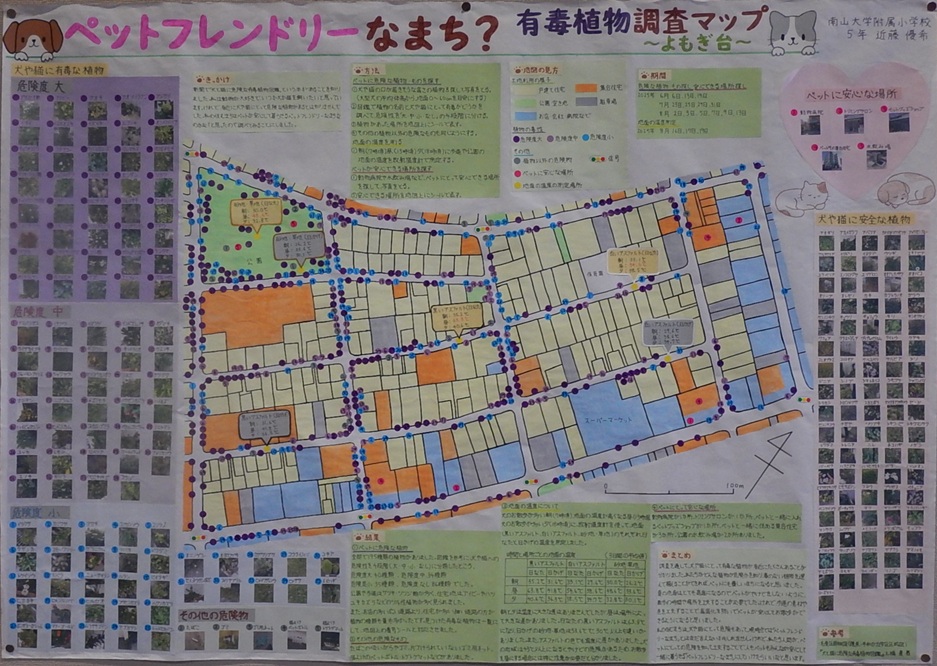 作品タイトル:ペットフレンドリーなまち? 有毒植物調査マップ~よもぎ台~ 氏名:近藤 優希 学校名:南山大学附属小学校 学年:5年 |