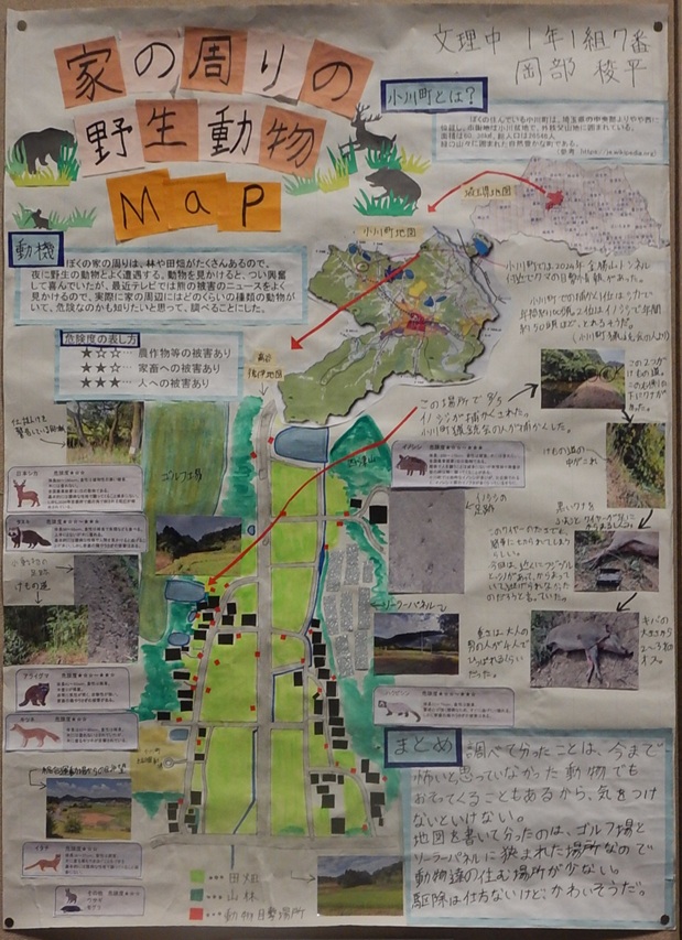 作品タイトル:家の周りの野生動物MAP 氏名:岡部 稜平 学校名:西武学園文理中学校 学年:1 |