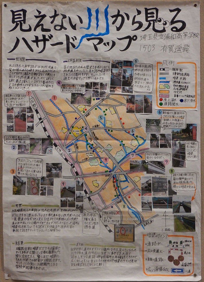作品タイトル:見えない川から見るハザードマップ 氏名:有賀 遥飛 学校名:埼玉県立浦和高等学校 学年:1 |