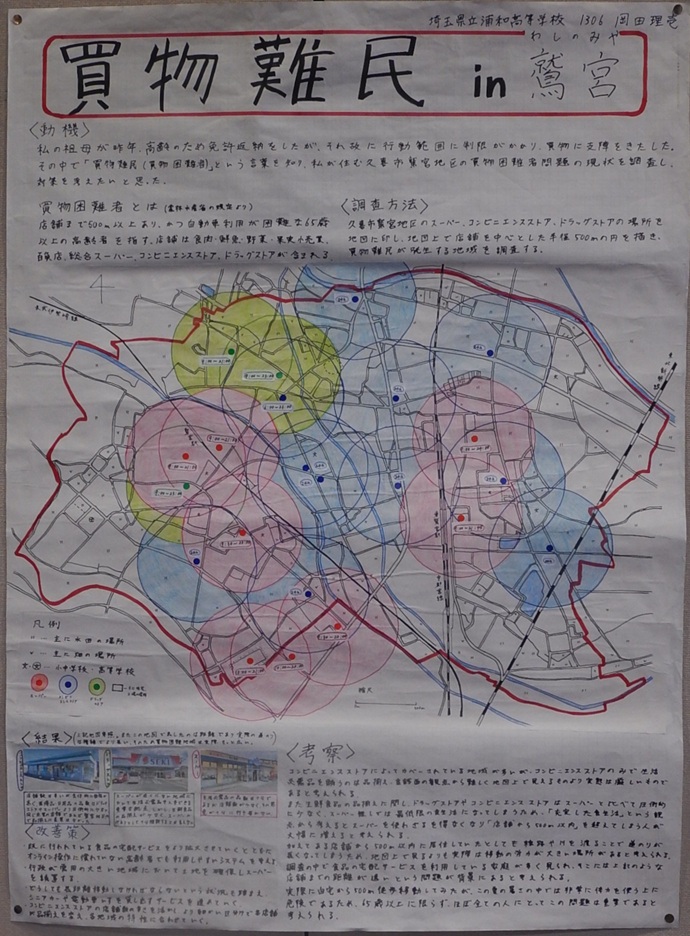 作品タイトル:買物難民 in 鷲宮 氏名:岡田 理壱 学校名:早埼玉県立浦和高等学校 学年:1年 |
