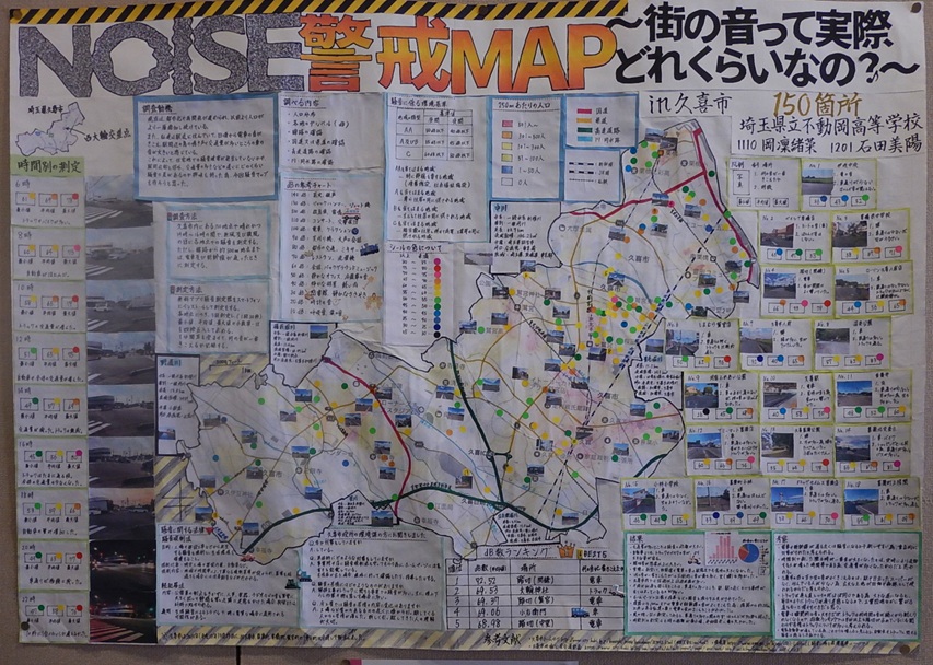 作品タイトル:NOISE 警戒 MAP~街の音って実際どれくらいなの? in 久喜市 氏名:岡 凛緒菜, 石田 美陽 学校名:埼玉県立不動岡高等学校 学年:1 |