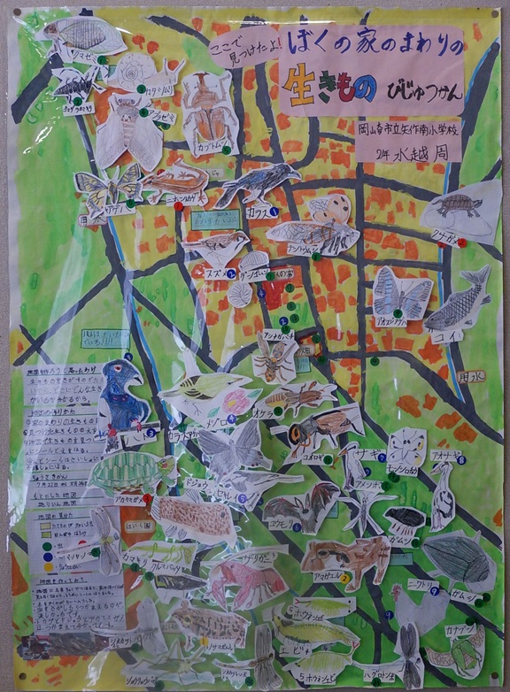 作品タイトル:ここで見つけたよ!ぼくの家のまわりの生きものびじゅつかん 氏名:水 越 周 学校名:岡崎市立矢作南小学校 学年:2 |