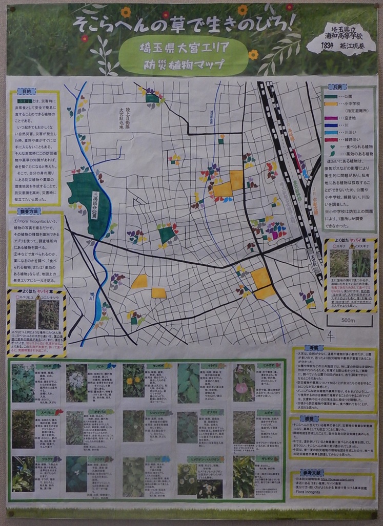 作品タイトル:そこらへんの草で生きのびろ! 埼玉県大宮エリア 防災植物マップ 氏名:堀 江 琉 葵 学校名:埼玉県立浦和高等学校 学年:1 |