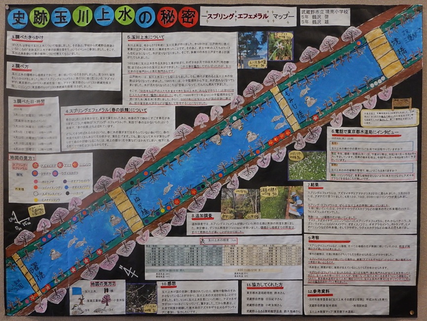 作品タイトル:史跡玉川上水の秘密 ~スプリング・エフェメラルマップ~ 氏名:鶴沢 啓,鶴沢 雄 学校名:武蔵野市立境南小学校 学年:5 |