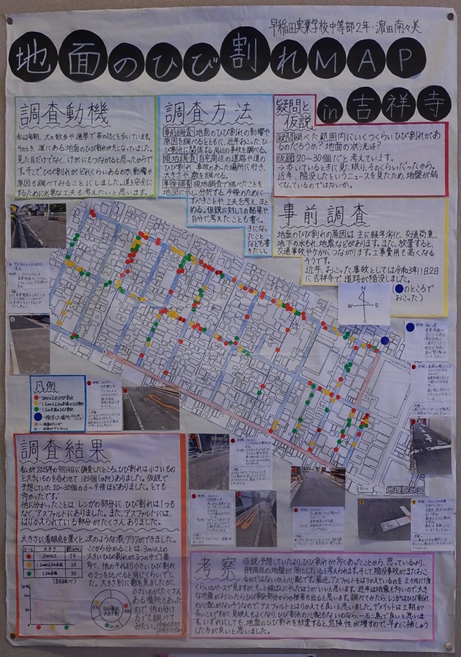 作品タイトル:地面のひび割れMAP in吉祥寺 氏名:濵 田 南々美 学校名:早稲田実業学校中等部 学年:2 |