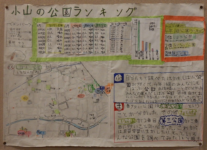 作品タイトル:小山の公園ランキング 氏名:吉川 すず,島田 壮, 芳賀 凛音 学校名:東久留米市立小山小学校 学年:4 |