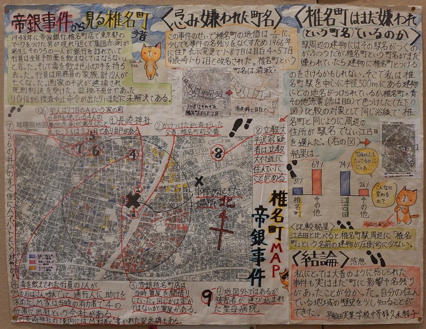 作品タイトル:帝銀事件から見る椎名町今昔 氏名:久 米 結 子 学校名:早稲田実業学校中等部 学年:1 |