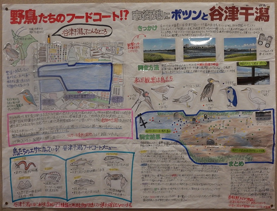 作品タイトル:野鳥たちのフードコート!?市街地にポツンと谷津干潟 氏名:松 田 いろは 学校名:跡見学園中学校 学年:2 |